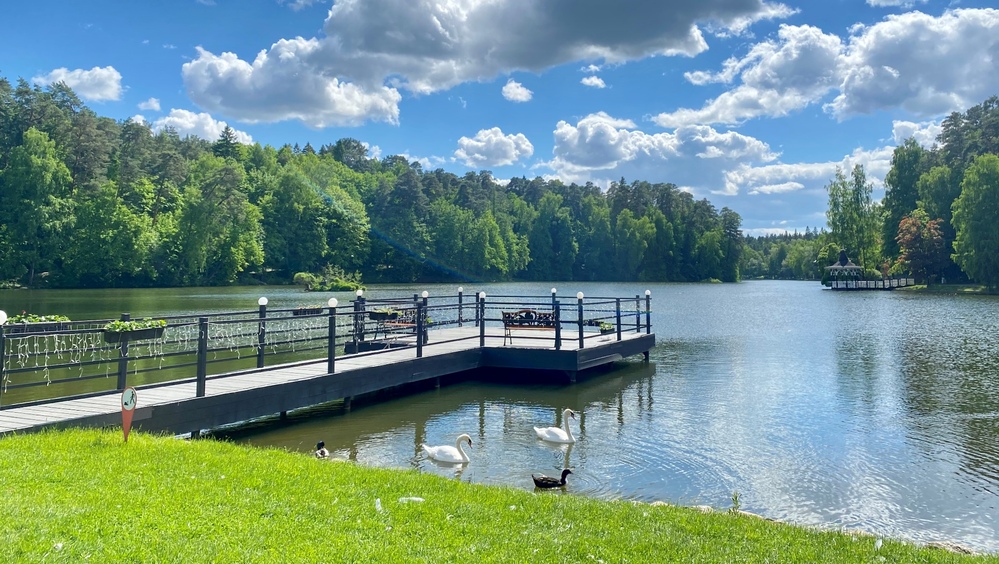 Клинический санаторий «Барвиха» находится среди рекреационной парковой зоны с прогулочными дорожками. Он окружен прекрасным озером и хвойными деревьями.