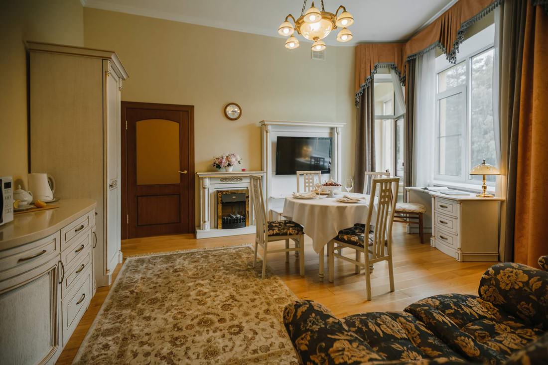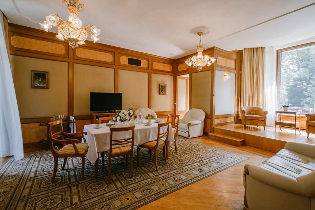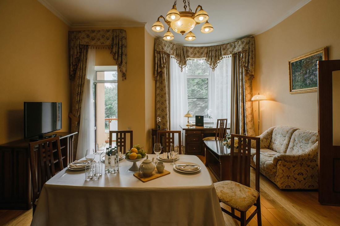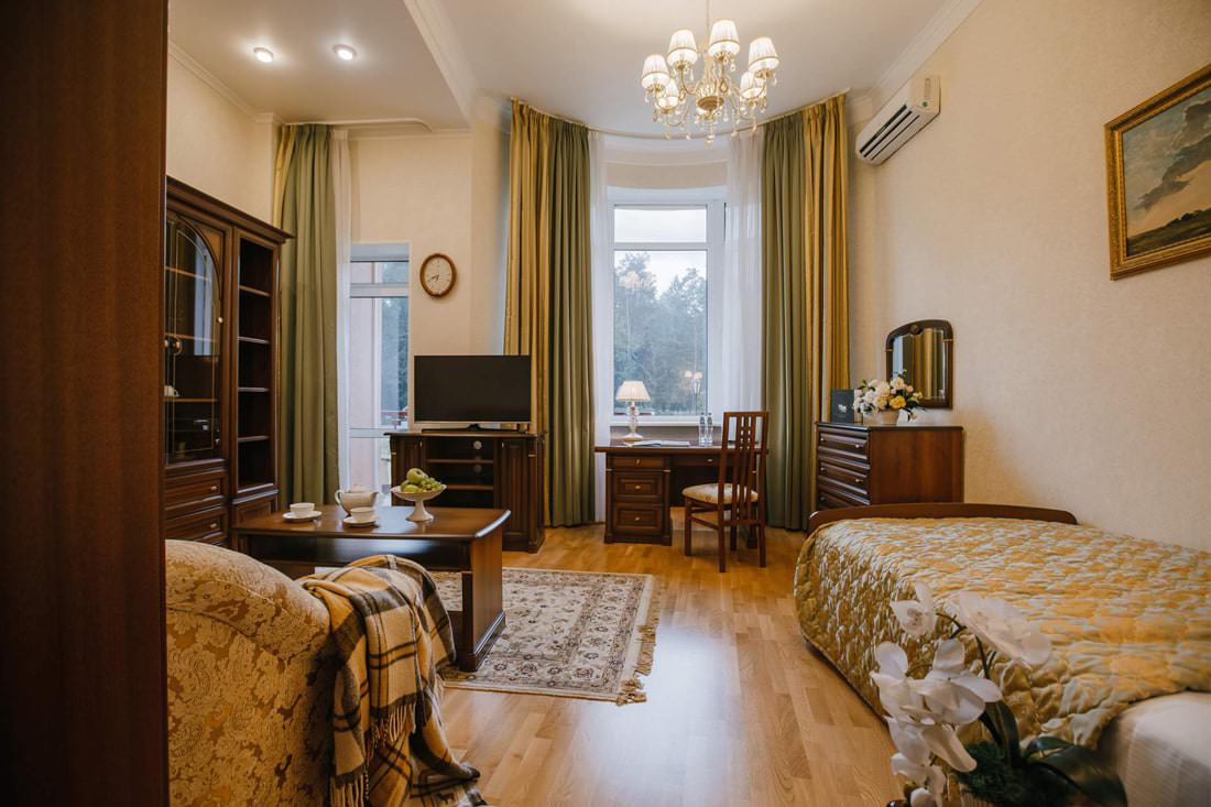 Здесь проводится восстановительное лечение высочайшего класса – предоставляется высококвалифицированная медицинская помощь по широкому спектру заболеваний. Для гостей подготовлены комфортные номера различной категории. Также здесь есть ресторан с диетическим питанием, бар, обеденный зал, бассейн, тренажёрный зал, библиотека, музей, спортивные площадки, теннисные корты и лодочная станция.