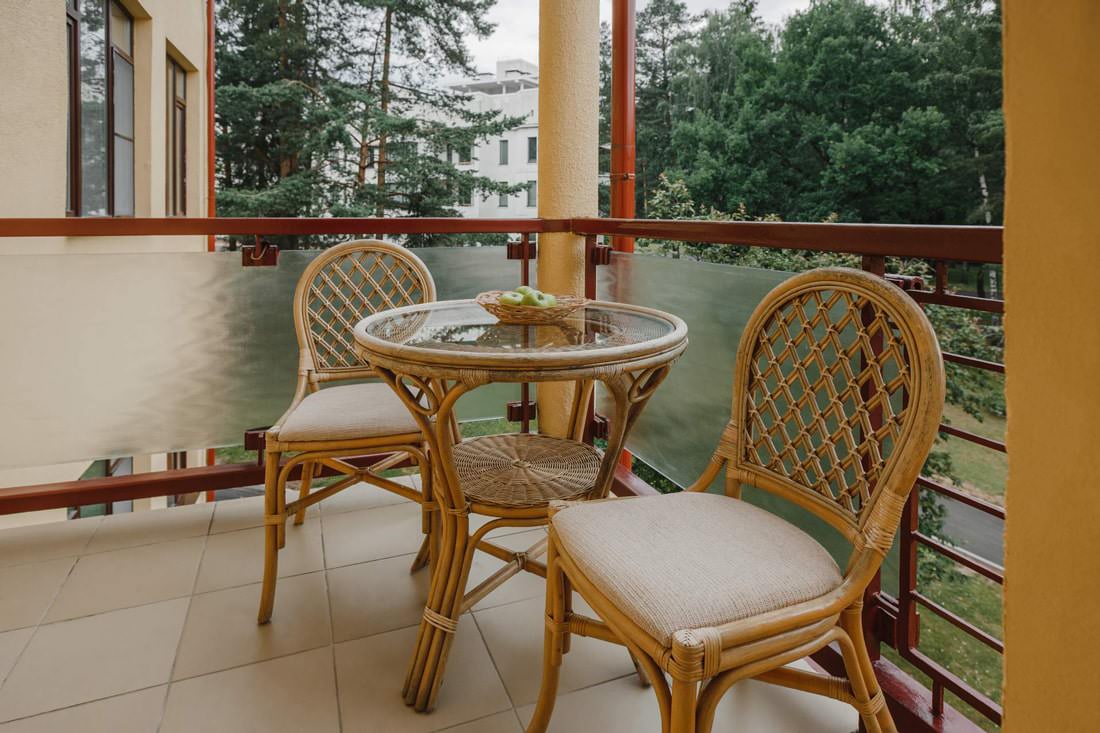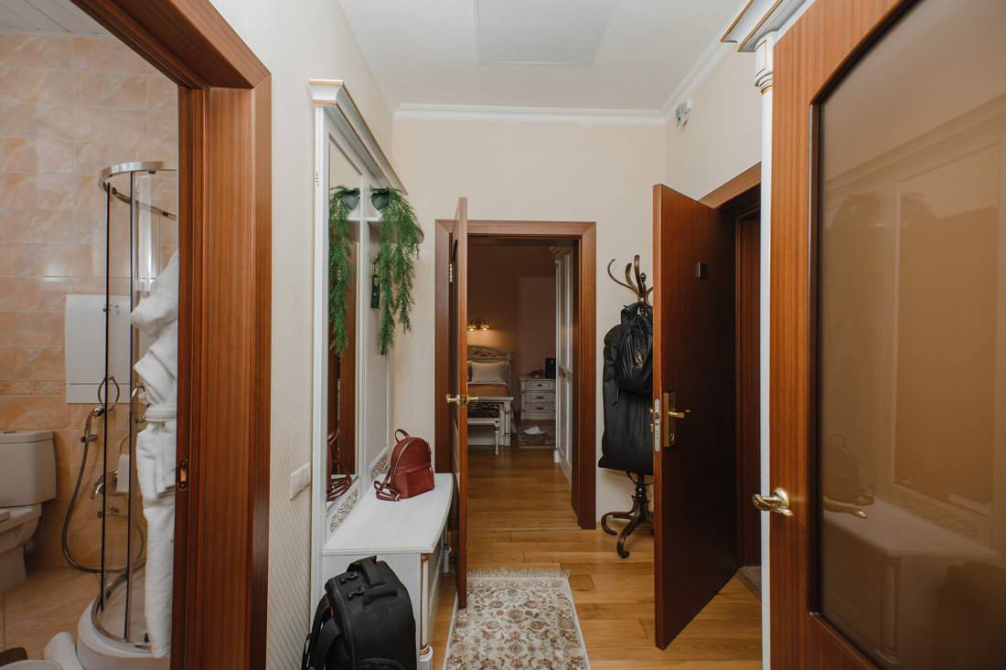 Апартаменты имеют площадь 60 кв.м и включают массажную комнату с беговой дорожкой, велотренажером и массажной кушеткой.