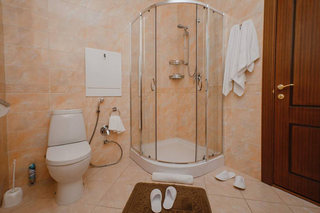 Ванная комната оснащена душевой кабиной. В ней имеются полотенца, которые меняются на свежие каждый день во время уборки.