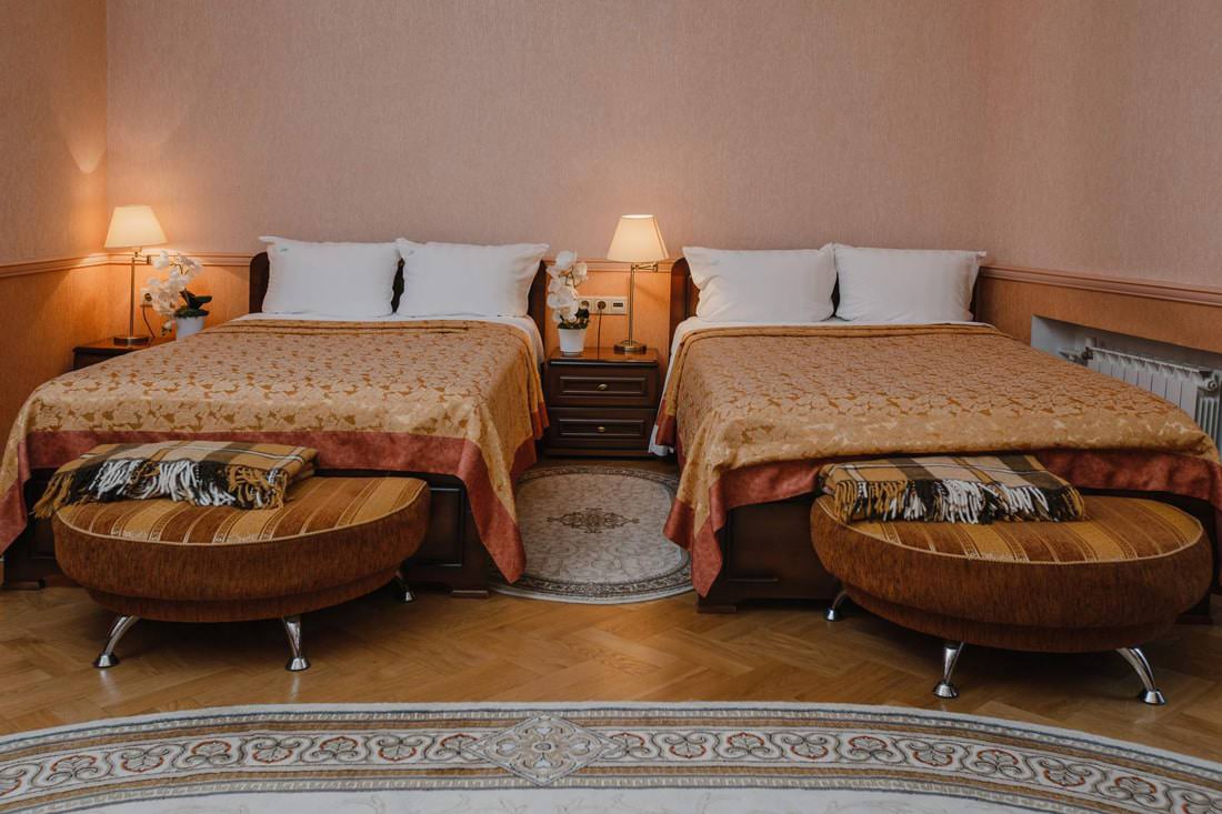 Номера 2 корпуса предназначены для проживания двух гостей. Они имеют высокие потолки и площадь до 40 кв.м.