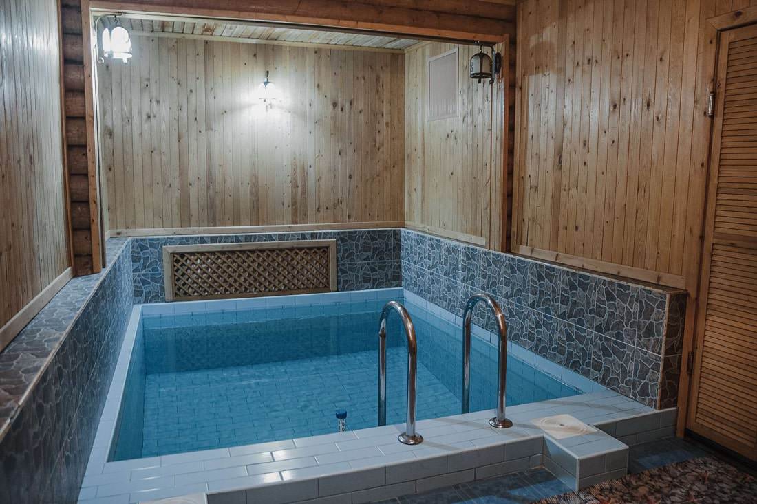 В коттедже площадью 356 кв.м имеются кухня, гостевая, две спальни и сауна с мини-бассейном.