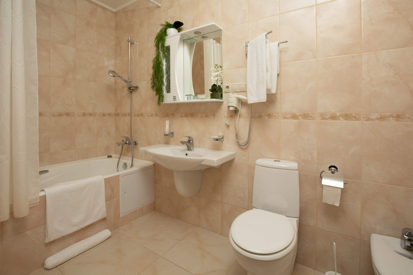 Площадь номера - 21,5-22,5 кв.м. 1 осн. место. 1 доп. место. Мебель: вешалка, диван, кровать полутороспальная, прикроватная тумбочка, стол, стул, шкаф. Оборудование: кондиционер, набор посуды, сейф, телевизор, телефон, холодильник, электрочайник. Санузел: с ванной или душевой кабиной, тапочки, туалетные принадлежности, фен, халат. Сервис: Wi-Fi бесплатно, смена полотенец (ежедневно), смена постельного белья (через два дня), уборка номера (ежедневно), услуги телефонной связи по территории отеля.